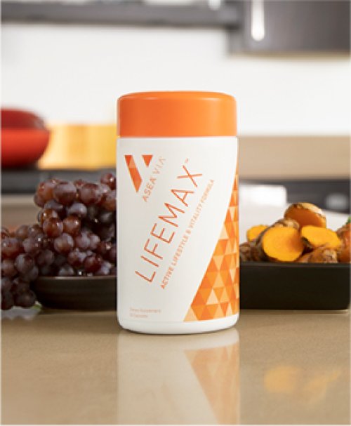 ASEA VIA LIFEMAX This supplement is formulated to combat the adverse effects of aging. It incorporates natural herbal extracts that boost energy levels, support the immune system, encourage a healthy inflammatory response, maintain joint health, and promote a youthful appearance. With maximum bioavailability in mind, each ASEA VIA product is designed to work in conjunction with ASEA REDOX and other VIA products for comprehensive cellular health and nutrition. This supplement is available in 90 capsules.